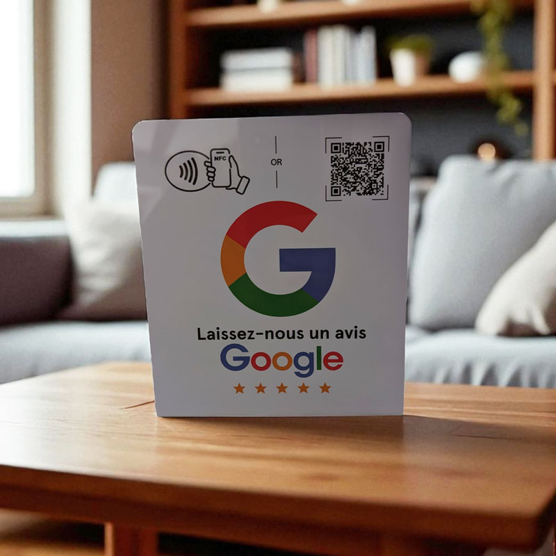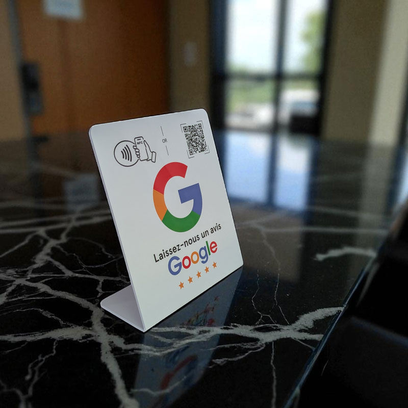Optimisez votre présence en ligne avec cette élégante ce support prêt à poser NFC et QR Code Google My Business.